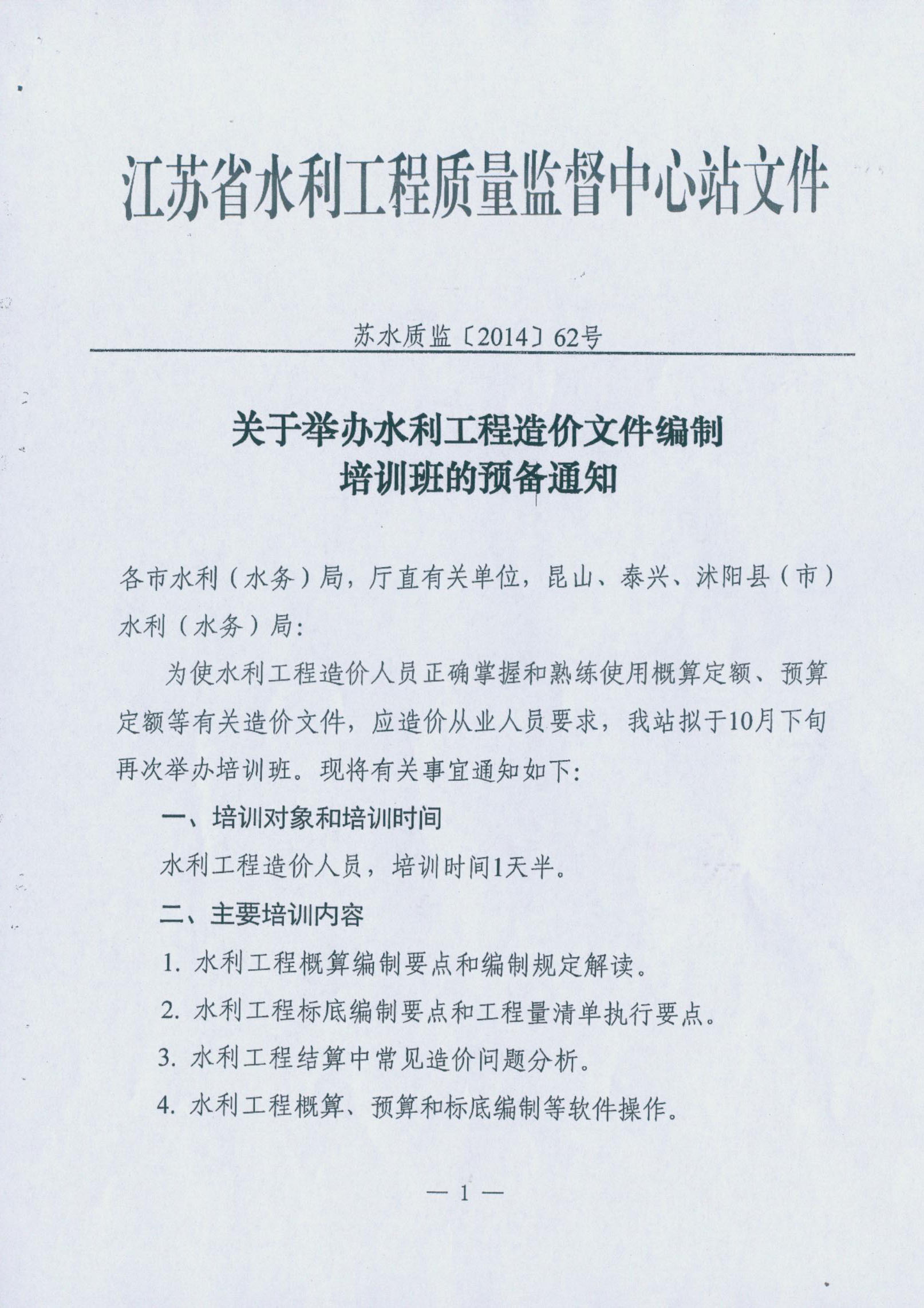 轉(zhuǎn)發(fā)《關(guān)于舉辦水利工程造價(jià)文件編制培訓(xùn)班的預(yù)備通知》的通知
