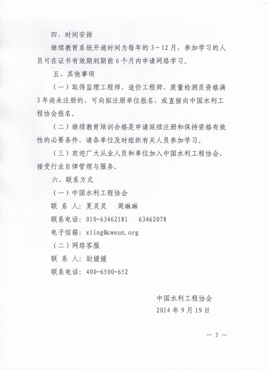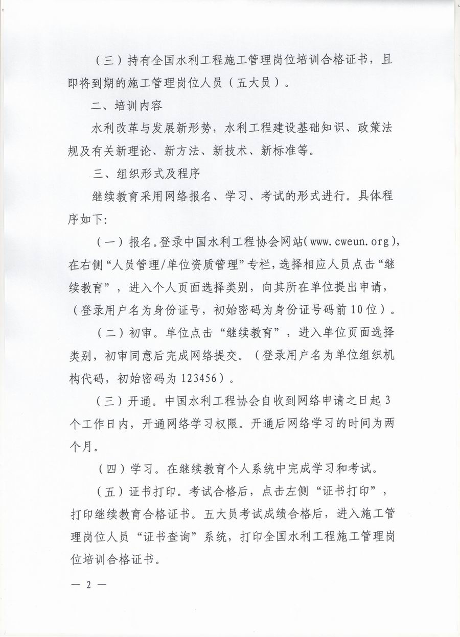 現(xiàn)轉(zhuǎn)發(fā)中國水利工程協(xié)會 《關(guān)于開展繼續(xù)教育工作的通知》給你們,請符合培訓(xùn)條件的人員,按照文件要求進(jìn)行報名申請。